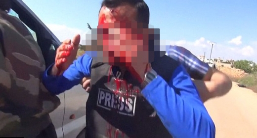 시리아에서 내전상황을 보도하던 기자가 생방송 도중 파편에 맞아 부상을 입는 장면이 고스란히 전파를 탔다.