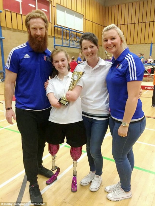 이지의 엄마는 “나와 남편은 딸이 다시는 걷지 못할 거라고 예상했지만 딸은 의수에 매우 빨리 적응하고 걷기 시작했다. 지금은 휠체어가 전혀 필요 없을 뿐 아니라 고난이도의 체조 동작을 해낼 정도로 발전했다”고 말했다.