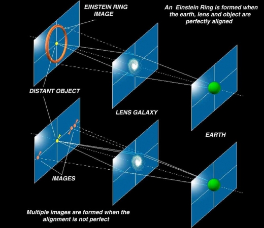 이를 알기 위해서는 아인슈타인이 딱 100년 전 일반 상대성이론에서 예언한 중력 렌즈 현상을 이해해야 한다. 아인슈타인은 강한 중력은 빛도 휘게 해서 렌즈역할을 할 수 있다고 예언했다. 이 중력렌즈는 사물을 확대하는 점에서는 돋보기와 유사해 아주 멀리 떨어진 은하를 본래보다 밝게 보이게 하지만 초점이 없기 때문에 상을 왜곡시키기도 한다.