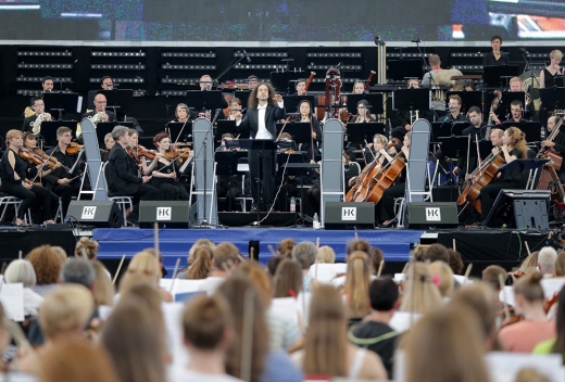 9일(현지시간) 독일 프랑크푸르트 축구장 코메르츠방크 아레나에서 7500명이 넘는 연주자가 참여한 연주회가 열렸다고 독일 DPA통신 등이 보도했다.