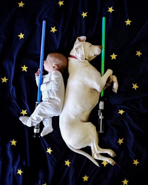 태어난 지 얼마 되지 않은 한 아기와 반려견의 끈끈한 유대 관계를 보여주는 사진이 인터넷상에서 화제다.