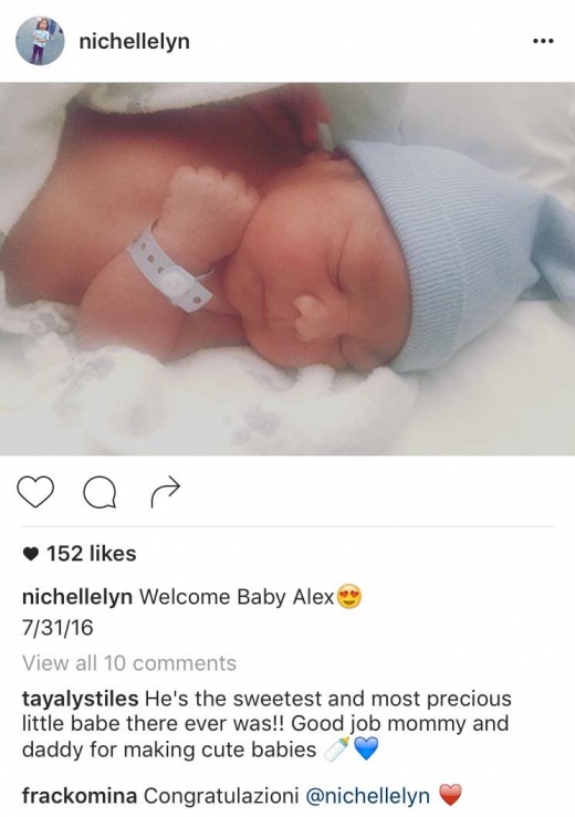 그녀는 지난달 31일 알렉스라는 이름의 남자아이를 낳았으며, 소식과 함께 하늘색 비니를 쓴 사랑스러운 아기 사진을 하루 뒤인 지난 1일 자신의 인스타그램을 통해 공개했다.