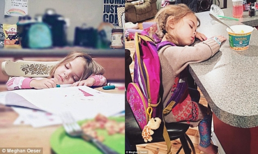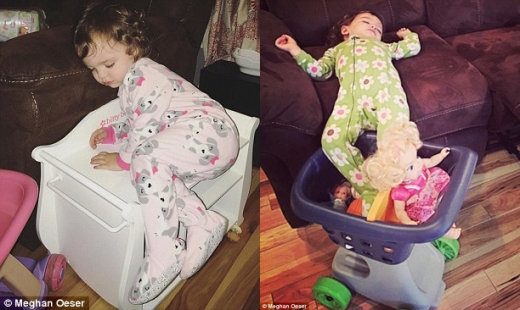 일리노이주(州)에 사는 여섯 아이 엄마 메간 오이서는 종종 가장 어린 두 딸 퀸(5)과 페니(3)가 집에서도 전혀 예상치 못한 곳에서 잠이 든 모습을 발견하고는 한다.