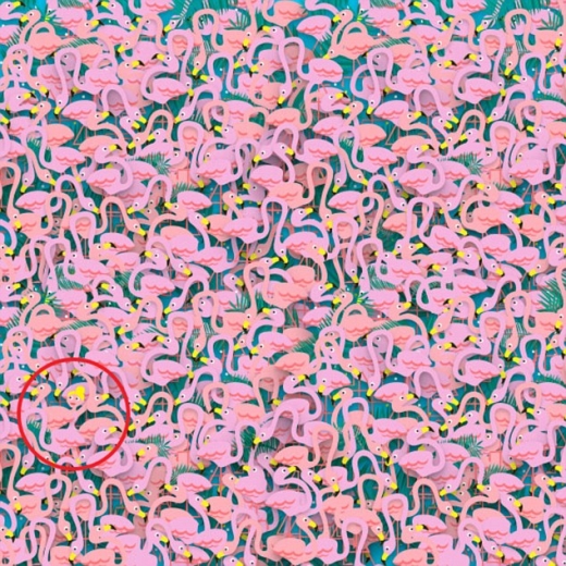 보너스 하나 더. 역시 페이스북을 타고 최근 폭발적인 인기를 얻는 퍼즐이다. 수많은 홍학 속에서 여성 댄서를 찾는 게임이다. 두 퍼즐의 정답은 모두 아래에 있다.