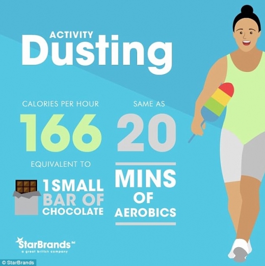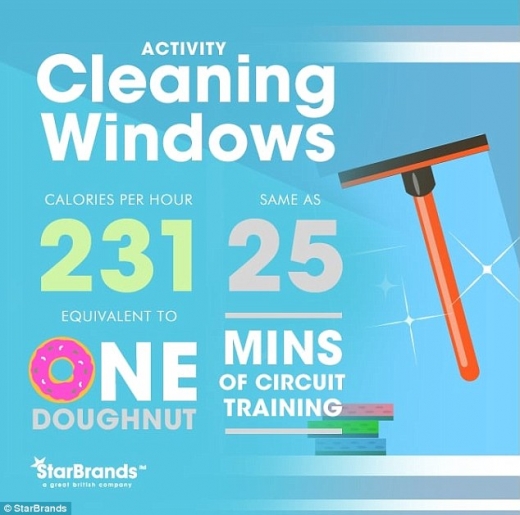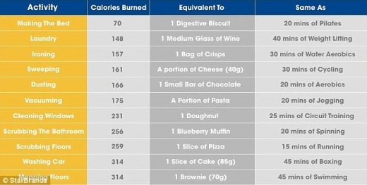 영국 일간 데일리메일 등 외신은 7일(현지시간) 집안일을 통해 소모할 수 있는 열량(칼로리)를 측정한 조사 결과를 소개했다.