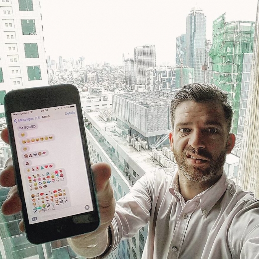 예를 들어, 첫째 딸이 “지루하다”면서 각종 이모티콘을 붙여 보낸 메시지에 그가 당황하는 모습인 것이다.