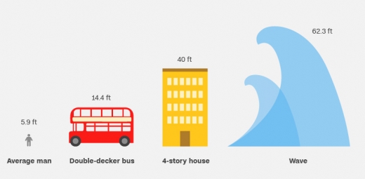 기존 기록은 지난 2007년 역시 같은 위치에서 기록된 18.3m다. WMO에 따르면 최고 기록이 세워진 이날 6층 건물 이상의 거대한 파도는 시속 80km의 바람을 동반해 거세게 몰아쳤다.