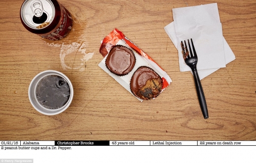미국에는 사형수들에게 사형 집행 직전 마지막 식사 메뉴를 선택할 수 있게 하는 관습이 있다. 사진작가 헨리 하그리브스는 남성 사형수 20명의 마지막 메뉴를 일일이 카메라에 담았다.