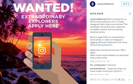 로열캐리비언 측이 이런 파격적인 단기 근무 직원을 선발하는 것은 소셜미디어 관리의 중요성을 인식했기 때문이다. 이 회사의 분석에 따르면, 휴가를 떠나는 사람의 48%가 여행상품 예약을 할 때 SNS 정보에 매우 의존하는 것으로 나타났다.