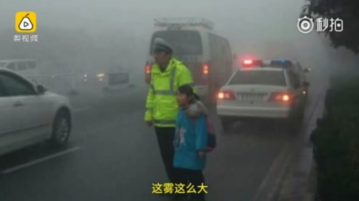 경찰은 소녀를 안심시킨 뒤 곧장 동료 경찰에게 무전으로 “대로변으로 경찰차를 가지고 와라. 아이 한 명이 스모그가 너무 심해서 (길을 잘 보지 못하고) 버스에서 잘못 내렸다”면서 “아이를 차에 태워 학교까지 데려다 줘야 할 것 같다”고 말한다.