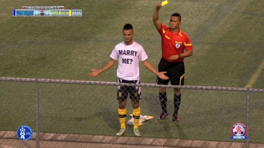 환상적인 골을 터뜨린 뒤 누구보다도 멋지게 프러포즈 한 축구선수에게 날아온 것은 ‘냉혹한 경고 카드’였다.