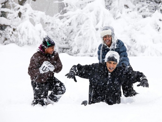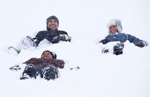 이 사진은 지난 2010년 2월 폭설이 내린 백악관 마당에서 촬영된 것이다. 사진에는 허리 높이까지 쌓인 눈 속에서 딸들과 뛰어노는 '아빠' 오바마의 모습이 생생히 담겨 있다.