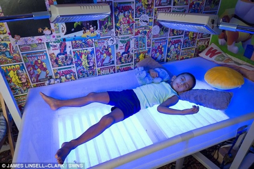 하루 20시간을 푸른 불빛이 나오는 침대에 누워 있어야 하는 소년의 안타까운 사연이 알려졌다.