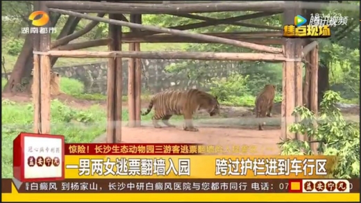 차이나뉴스와 후난도시 등 현지 언론에 따르면 친남매 사이로 확인된 이들은 7마리 벵갈호랑이가 사는 울타리 바로 옆으로 들어왔다. 3남매는 약 4.4m 높이의 전기 울타리를 넘어가려다가 검문소 직원에게 ‘다행히’ 발각돼 목숨을 건졌다.