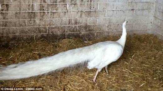 영국 일간지 데일리메일의 12일자 보도에 따르면 최근 잉글랜드 남부 웨스트서식스 주의 한 주택가에서 온 몸이 새하얀 희귀 알비노 공작이 발견됐다.