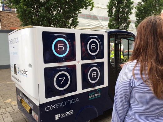 대형 온라인 슈퍼마켓 업체인 오카도(Ocado)는 영국 런던에서 카고팟(CargoPod)이라는 자율주행 배달트럭을 선보였습니다. 프로토타입의 카고팟은 2명이 탑승할 수 있는 공간과 운전석을 만들어서 사람이 감독하는 상태에서 자율주행을 하게 됩니다. 이는 만약에 발생할 수 있는 사고를 예방함과 동시에 법적인 문제를 피해가기 위한 것입니다. 카고팟은 작은 크기에 8개의 택배함 같은 보관함이 있으며 각각의 보관함은 큰 장바구니 하나가 들어가는 데 충분한 공간을 지니고 있습니다. 배송지에 도착하면 보관함이 열리면서 LED 등으로 표시가 되고 고객은 자신의 장바구니가 담긴 보관함에서 물건을 꺼낼 수 있습니다.