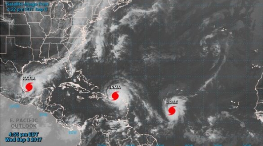 지난 8일(이하 현지시간) 미국 CNN은 어마가 플로리다로 이동하는 상황에서 허리케인 '호세'(Jose)와 '카티아'(Katia)도 동시에 대서양에 나타났다고 보도했다.