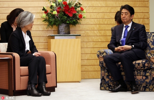 중국 국영 언론 관찰자망은 20일 강 장관과 아베 총리 두 사람이 높이가 다른 의자에 앉아 있는 사진을 보도, ‘한국은 평창 올림픽에 대한 일본의 참여를 독려한 반면, 일본은 위안부 합의를 강조했다’고 이 같이 보도했다.