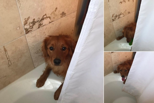 “괜찮아요?” 목욕 중인 주인 걱정하는 견공