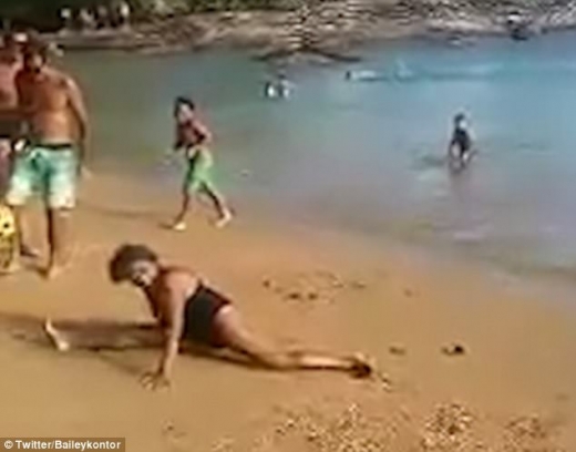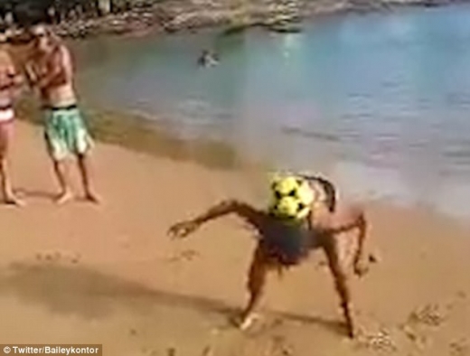 지금까지 조회 수가 67만 회를 넘은 해당 영상에는 수영복 차림의 한 할머니가 해변에서 많은 사람이 지켜보는 가운데 노란색 축구공으로 묘기를 부린다.