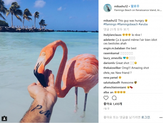남국의 섬답게 에메랄드빛 푸른 바다와 맑고 푸른 하늘. 그 안에서 분홍색 플라밍고들이 돌아다니는 모습을 보면 자연히 SNS에 사진을 올리게 되는 것이다.