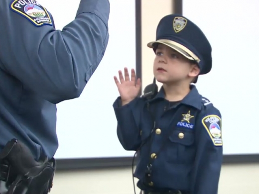 조슈아는 지난 17일(현지시간) 경찰서에서 열린 행사에 나와 멋진 경찰복을 차려입고 오른손을 들고 선서했다. 조슈아는 "선량한 시민으로서 부모님 말을 잘듣고 다른 사람에게도 친절을 베풀겠다"면서 "야채를 잘 먹고 장난감을 형들과 나눠쓰겠다"고 약속했다.