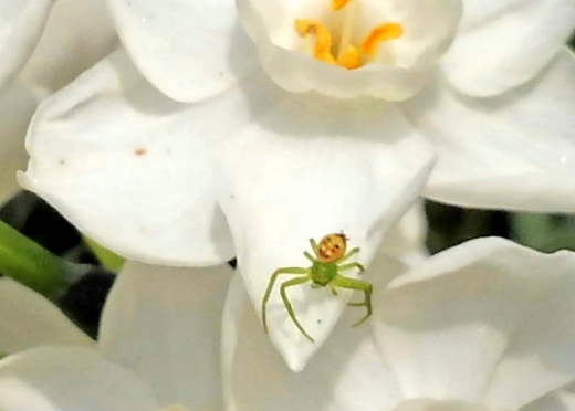 이 거미는 게거미과(科)의 대표 종인 꽃게거미(학명 Misumenops tricuspidatus)로, 성장하는 과정에서 등 부분에 갈색 얼룩 무늬가 생긴다.