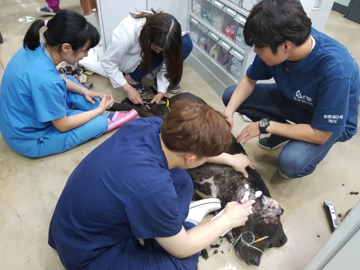 살상(殺傷)의 링 위에서 내려온 녀석들은 투견이라고 믿기지 않을 만큼 순하고 착했다. 인간이 아닌 개를 향해서만 증오를 뿜어내도록 훈련된 탓이다. 그런데 검은 투견 ‘태호’의 몸 상태가 예사롭지 않았다. 힘없이 드리워진 귀를 젖혀보니 진득한 고름이 여기저기 뭉쳐 있었다. 물린 자국으로 감염이 심해진 목 언저리도 볼록한 수포를 누를 때마다 누런 농이 끝도 없이 터져 나왔다. 물린 상처를 제때 치료 받지 못한 채 계속 투견장으로 내몰려 상처가 나을 새 없이 깊어진 탓이었다. 태호는 감염이 심한 피부를 잘라내고 봉합하는 수술과 장기간 깊은 내상 치료를 견뎌야 한다.