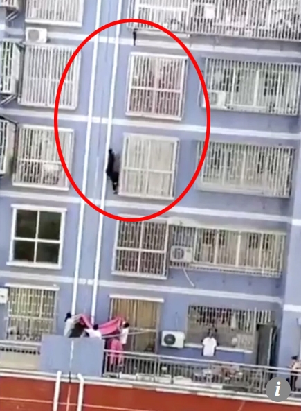 행인들은 아파트 5층 난간에 아슬아슬하게 매달린 2살 아이를 발견한 뒤 소리를 질렀고, 아이가 발버둥을 치며 아슬아슬하게 매달려 있는 사이 이를 본 사람들은 어쩔 줄 몰라 하며 우왕좌왕하고 있었다.