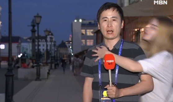 지난 4일(이하 현지시간) 영국 BBC 뉴스는 지난달 28일 러시아에서 월드컵을 취재 중이던 전광열 MBN 기자가 생방송 도중 두 명의 러시아 여성에게 뽀뽀를 받아 화제를 모았다고 보도했다. 영상에는 생방송 리포팅 중인 전 기자에게 한 러시아 여성이 갑자기 달려와 볼에 입을 맞추고, 곧 또다른 여성이 두번째 뽀뽀를 하는 모습이 담겨있다. 이에 순간적으로 당황한 기자는 결국 웃음을 참지 못하고 무너진다.