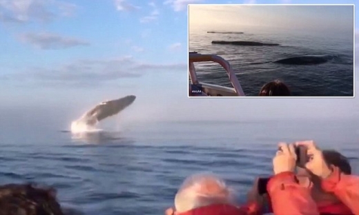 그러자 한 가이드가 관광객들에게 “준비하세요. 트리플 브리치를 할 것 같다”고 외친다. 여기서 브리치는 고래가 본능적으로 수면 위로 뛰어오르는 행동을 말한다. 즉 이들 고래가 이전에도 관광객들 앞에서 이런 행동을 선보였다는 것이다.