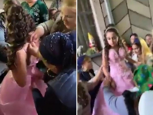 공개된 영상에는 집시 하객으로 가득찬 장소에서 8살 소녀에게 가족들이 성인용 웨딩드레스를 입히느라 분주한 모습이 담겼다.