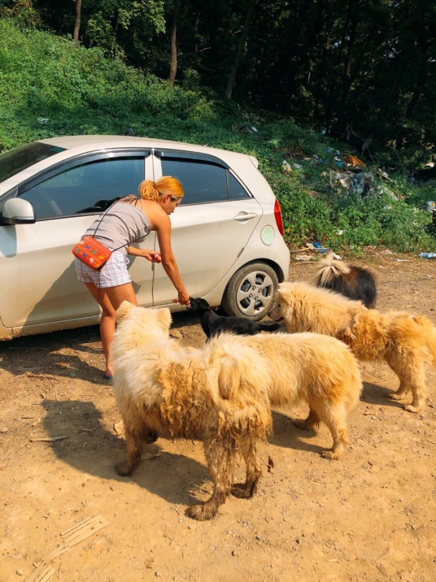 7월 초부터 시작된 봉사활동을 우린 단 하루도 쉴 수 없었습니다. 조금이라도 깨끗해 보이고 예뻐 보이는 녀석들은 먼저 임시보호나 입양을 나갔기 때문입니다. 그런 녀석들을 보면서 우린 더 치열하게 매달렸습니다. 워낙 끔찍한 사건인지라, 하남의 개들 소식은 전세계로 퍼져 나갔습니다. 삼삼오오 전국에서 밀려든 도움의 손길로, 작은 개들과 품종을 가진 순혈종의 개들은 모두 입양을 갔습니다. 그리고 남은 누렁이와 진도믹스 80여 마리. 우린 이 녀석들을 순화시켜 해외로 입양보내는 계획을 세웠고, 매일 매일 줄에 묶어 산책 훈련까지 시켰습니다. 줄이 뭔지도 모르는 개들은 처음에 껑충껑충 이리 저리 뛰며 거부 반응을 보였지만, 생전 처음 자신들을 애정으로 돌보는 사람들이라 생각했는지 우리 손길을 얌전히 받아들여 주었습니다. 그렇게 해서 20여 마리가 또 입양을 갔습니다.