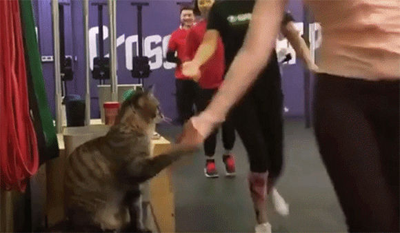 손 내밀면 하이파이브!…어느 체육관의 고양이 코치 (영상)