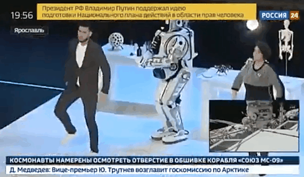 영국 BBC 등 해외 언론의 12일 보도에 따르면 최근 러시아 국영채널인 러시아24 텔레비전을 통해 첨단 로봇이 등장하는 프로그램이 전파를 탔다.