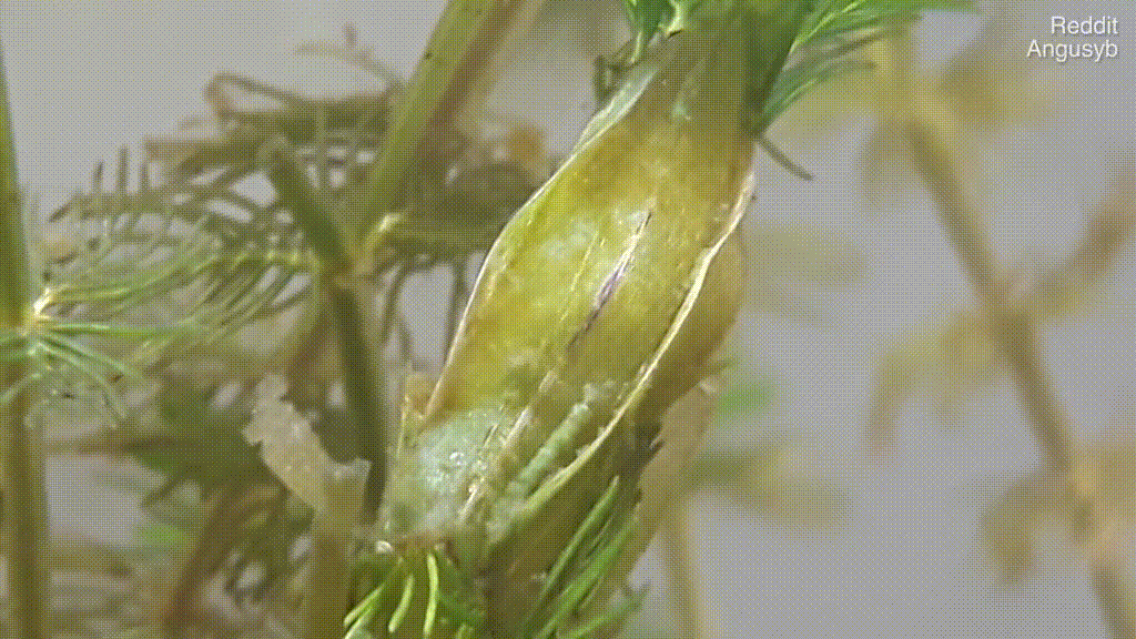 보도에 따르면 앵거스는 한 달 전 뉴질랜드 와이카레모아나 호수에서 식물 일부를 채취해 자신의 수족관에 옮겨 심었다. 얼마 후 앵거스는 옮겨 심은 식물 사이에서 수상한 생물체가 움직이는 것을 발견했다. 지난 6일 앵거스가 공개한 영상에는 속이 투명한 식물 사이로 무언가 꿈틀거리는 모습이 담겨 있다.