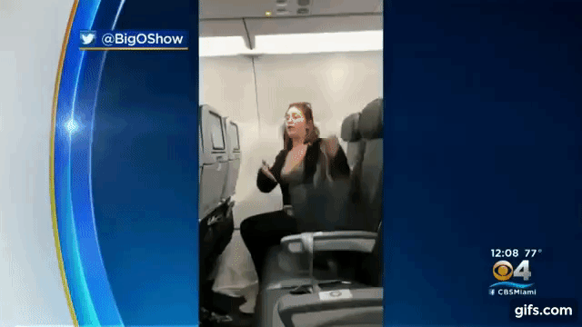 문제의 승객이 기내에서 소란을 일으키고 있다는 것을 알아챈 한 승무원이 곧바로 보안관 사무소에 신고했고 급히 출동한 보안관들은 그녀에게 기내에서 내릴 것을 명령했다. 그러자 그녀는 “왜 내려야 하느냐? 난 아무 잘못도 안 했다”고 불평했지만, 명령을 거부하지는 않았다. 그녀는 결국 자리에서 일어서서 짐칸에서 자기 짐을 챙길 때도 입버릇처럼 욕을 내뱉었다. 이어 자신의 언행을 다른 승객들이 촬영하고 있다는 것을 알게 되자 “누구야, 누가 찍고 있느냐? 찍으면 퍼트려라!”면서 “내려주겠다”고 큰 소리로 말했다. 이어 “자, 여러분 안녕! 1시간 뒤 라스베이거스에서 만납시다!”고 외치며 손키스까지 해보였다.