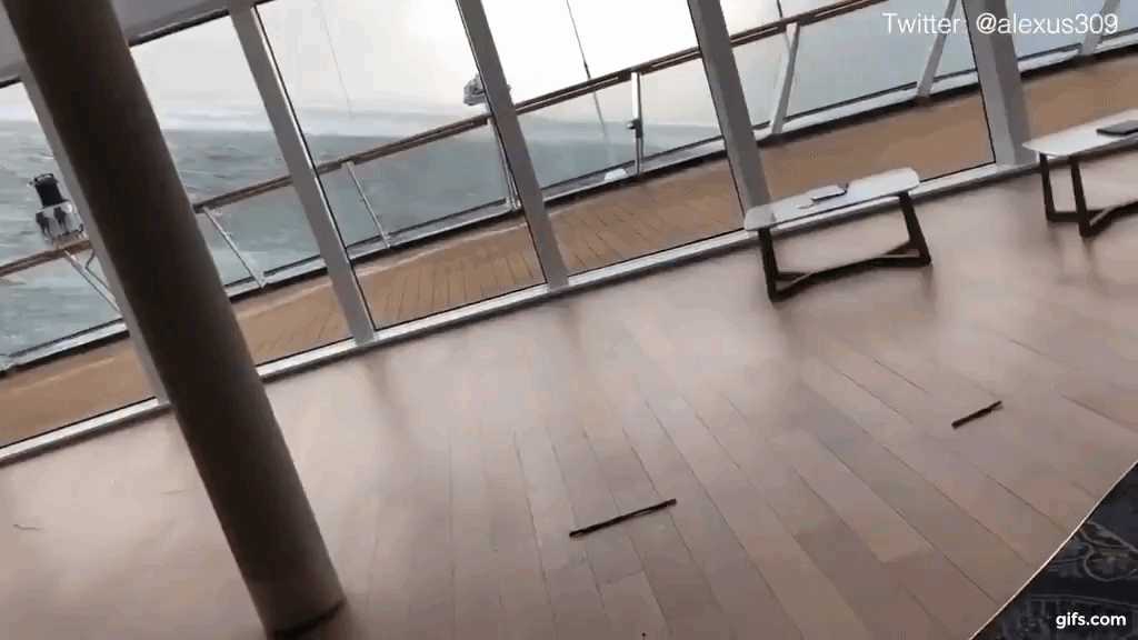 승객들이 공개한 크루즈선 내부 영상에는 여유롭게 휴가를 즐기던 승객들이 배가 기우뚱하면서 패닉에 빠진 모습이 담겨 있다. 가구들이 쓸려내려가고 천장에서 떨어진 합판에 맞아 부상을 당한 승객도 있었다. 높은 파도가 창문을 깨고 배 안으로 들이치면서 승객들이 발을 들어올린 채 물을 피하는 모습도 포착됐다. 미국인 승객 존 커리는 “배가 흔들리기 시작할 무렵 점심을 먹고 있었는데 창문이 깨지고 바닷물이 들이쳤다. 혼돈 그 자체였다”고 말했다. 그는 승객 대부분이 장년층이다보니 자칫 차가운 바닷물에 비상 상황이 발생할 수도 있었다며 가슴을 쓸어내렸다.