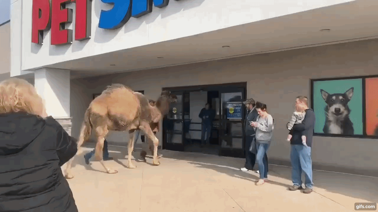 마트 안 낙타 등장에 얼빠진 사람들…‘출입 불가’ 목록에 없어 못 막아