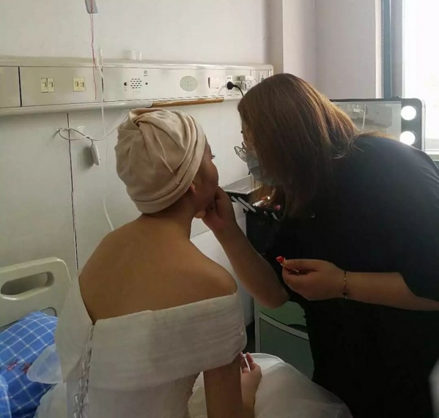 지난 25일 혈액암 병동에 모습을 드러낸 올해 24세의 샤오리 양은 이날 약 3년 동안 교제했던 남자친구 샤오예 군과의 작은 예식을 병실에서 진행했다. 병실 예식에는 남자친구 샤오예 군과 그의 가족, 병동 담당 간호사 등 소수가 참석해 이들의 예식을 축하했다.