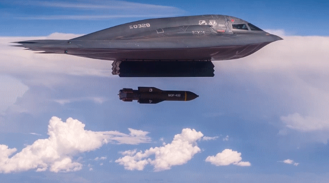 지난 18일 러시아 영자매체 러시아투데이(RT), 영국 데일리메일 등 서구언론은 미 공군이 GBU-57 두 발을 투하하는 영상을 공개했다고 보도했다.