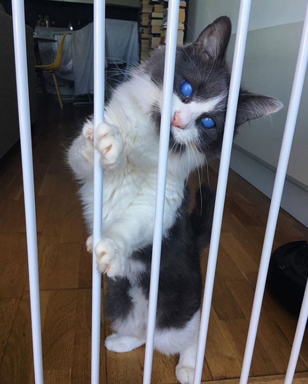얼핏 보면 오묘한 푸른색 눈의 고양이가 공을 보고 쫓아가는 것 같겠지만 사실, 이 고양이는 앞을 보지 못한다. 7년 전 지금의 주인에게 입양된 고양이 ‘루이’는 눈물관과 눈동자 없이 태어난 시각장애묘다. 또한 3만 명의 팬을 거느린 인스타그램 스타묘이기도 하다. 루이의 집사 케리 덴먼은 “몇 년 전 부모님 댁 근처에 살던 이웃집에서 새끼 고양이가 태어났다는 소식을 듣고 찾아갔다가 루이를 만났다”고 설명했다. 그녀가 도착했을 때 이웃주민은 루이를 가리키며 눈에 이상이 있는 고양이이니 신경 쓰지 말라고 말했다. 죽도록 방치된 것 같다는 느낌을 받은 그녀는 그 고양이를 입양해와 루이라는 이름을 지어주었다. 그렇게 빨래 바구니 위에 작은 솜뭉치 같은 몸을 웅크리고 있던 루이는 주인을 만나게 됐다.
