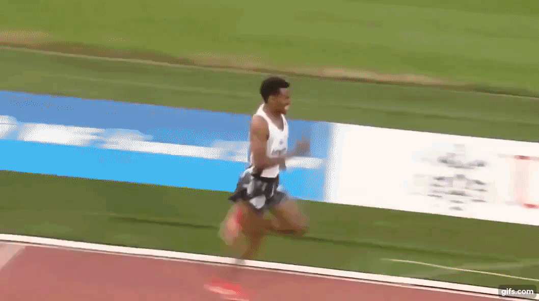 마지막 바퀴를 여유롭게 마치고 결승선으로 들어온 그는 트랙을 가로질러 관중석 앞으로 향했고 주먹을 불끈 쥔 손을 들어올리며 승리를 자축했다. 그러나 우승의 기쁨도 잠시, 게브르히웨트는 곧 자신을 지나쳐 트랙을 계속 달리는 동료 선수를 목격했다. 당황한 표정으로 앞질러가는 선수를 바라보던 그는 곧바로 다시 트랙으로 진입해 전력 질주를 시작했다.