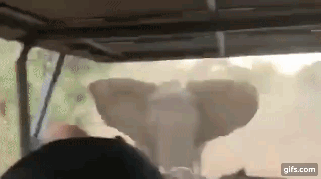 데일리메일 호주판 등 외신은 16일(현지시간) 이날 소셜사이트 레딧닷컴에 공유된 한 유튜브 영상을 소개했다. 영상은 전날 게시된 것으로, 한 공원에서 사파리 지프 한 대가 달려오는 코끼리를 피하고자 전속력으로 후진하는 모습을 차량 뒷자리에 타고 있던 한 관광객이 촬영한 것이다.