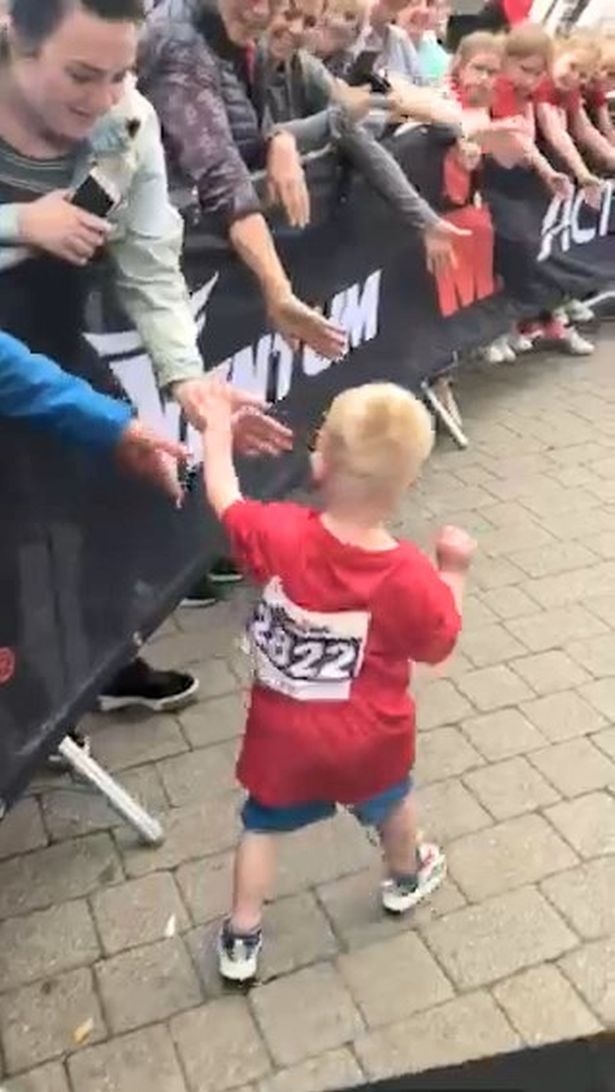 다운증후군을 가진 이 아이는 지난 주말 잉글랜드 북서부 그레이터맨체스터 주의 볼턴에서 열린 ‘철인 어린이 경기’ 500m 레이스에 참가했다.