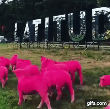 문제는 축제 첫날부터 불거졌다. 래티튜드 측은 18일 마케팅 캠페인의 일환으로 여러 마리의 양을 축제장에 풀어놓았는데, 모두 털 전체가 분홍색으로 염색된 상태여서 논란을 불러일으켰다. 분홍색 양은 이번 축제의 상징이었는데, 마케팅을 강화하려던 주최 측이 살아있는 양을 분홍색으로 염색시켜 투입하는 무리수를 둔 것이었다. 마치 축제 포스터에서 방금 튀어나온 듯한 살아있는 분홍색 양들의 모습에 동물권단체들은 맹렬히 비난을 쏟아냈다.
