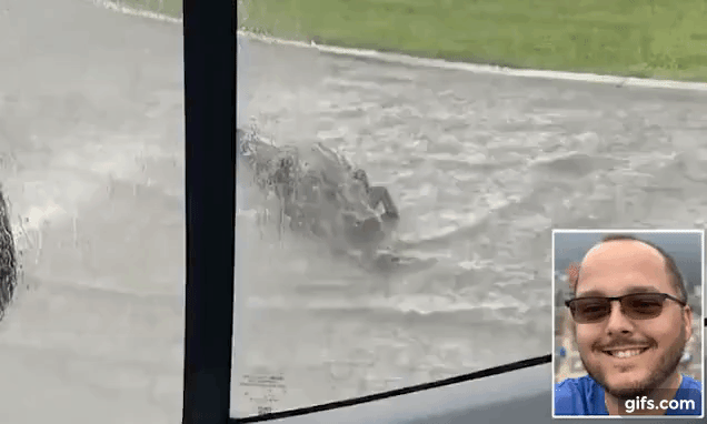 美 폭우 속에 도로로 기어나온 거대 악어…운전자들 ‘깜짝’