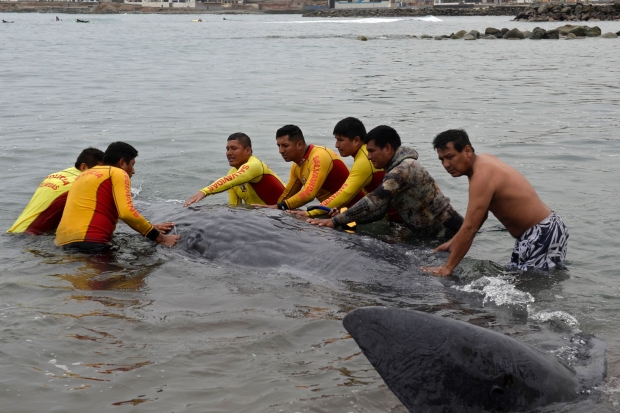 21일(이하 현지시간) 라 리퍼블리카 등 현지언론에 따르면, 20일 페루 수도 리마 남쪽 산 바르롤로 해안 암초지대에 갇혔던 새끼 향유고래 한 마리가 시민과 구조대의 도움으로 암초지대에서 벗어날 수 있었지만, 심각한 부상으로 결국 안락사됐다.