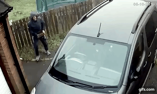 차 유리 깨려고 벽돌 던졌다가 자기 얼굴 때린 도둑 (영상)