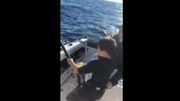 아버지 조나단은 “상어를 보는 순간 온몸의 아드레날린이 솟구쳤다”고 회상했다. 모두가 낚싯대를 드리웠지만 상어를 낚시 바늘에 잡는데 성공한 것은 8세 소년인 제이든. 이때부터 소년과 상어의 사투가 벌어졌다. 당시 촬영한 동영상에는 몸 전체로 상어와 사투하는 제이든의 모습이 고스란히 담겨있다. 상어의 힘에 딸려 바다로 들어갈지도 모르는 상황에 아버지 조나단이 아들의 낚시 벨트를 뒤에서 꼭 부여잡아야 했다. 제이든은 “보트의 벽을 이용해 온힘으로 지탱해야만 했다”고 말했다.